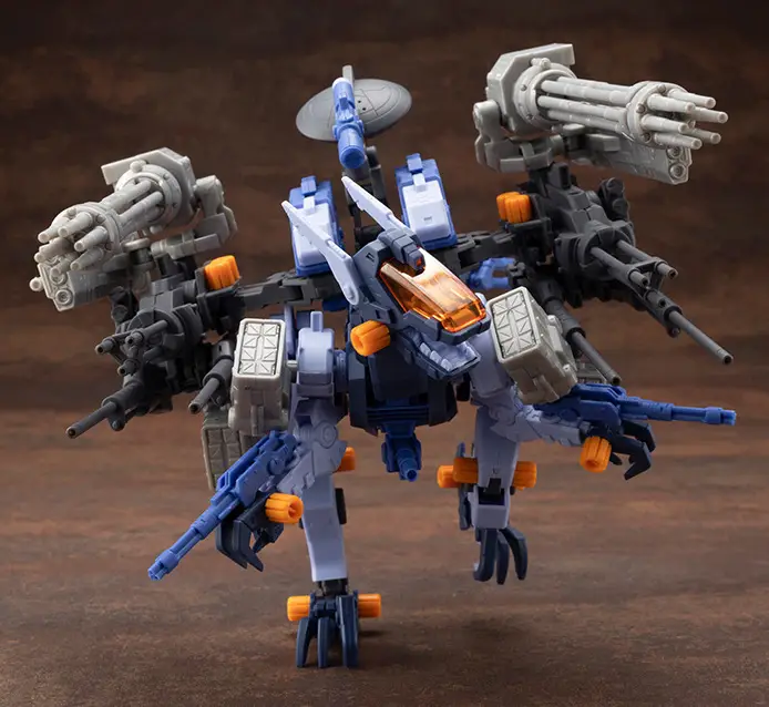 Арсенал уничтожения:Помимо фирменного блока Wild Weasel, на спине установлены монструозная шестиствольная лучевая Гатлинг-пушка и тройная линейная пушка AZ. Ракеты, размещённые в различных точках корпуса, превращают эту модель в настоящую передвижную крепость. В комплект также входит специальная оружейная корзина для воссоздания сцен из аниме!
