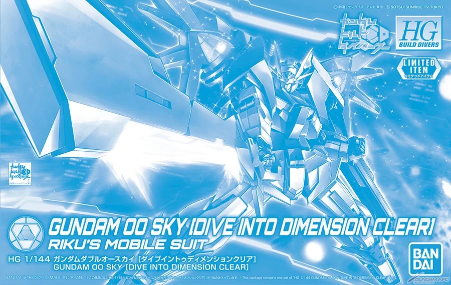 GN-0000DVR/S Gundam 00 Sky [Dive Into Dimension Clear] — это эксклюзивная пластиковая модель (Gunpla) в масштабе 1:144, выпущенная компанией Bandai Spirits в 2019 году. Модель относится к серии Gundam Build Divers и отличается особым прозрачным (clear) цветовым исполнением.